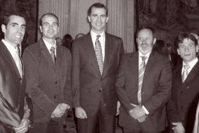 El centrocampista del FC Barcelona Xavi Hernández y la atleta Marta Domínguez recibieron el Premio don Felipe de Borbón y Reina Sofía, respectivamente, en la ceremonia de entrega de los Premios Nacionales del Deporte 2009, que estuvo presidida por SSMM los Reyes en el Palacio Real. Xavi Hernández fue galardonado con el ‘Premio Don Felipe Borbón’ como mejor deportista español del año a nivel nacional e internacional. El de Terrassa, que sucede en el palmarés al tenista Rafa Nadal, vivió un gran año 2009, pues fue una de las piezas clave del conjunto catalán, que logró los seis títulos que disputó. El centrocampista azulgrana fue el gran ausente de la ceremonia, por lo que sus padres se encargaron de recoger el trofeo. Xavi acumula molestias musculares que no le impidieron completar un gran partido frente al Villarreal, pero a buen seguro que deseaba evitar cualquier tipo de cansancio de cara a otro compromiso clave, el del mañana contra el Tenerife. Por su parte, el ‘Premio Reina Sofía’ fue, como mejor deportista española, para Marta Domínguez. La atleta palentina se convirtió en el verano de 2009 en la nueva campeona del mundo de los 3.000 metros obstáculos, único oro de la delegación española en Berlín, pese a que sólo llevaba compitiendo en esta disciplina apenas dos años. Domínguez releva en el galardón a las tenistas Anabel Medina y Virginia Ruano. Además, el ‘Premio Nacional Princesa de Asturias SAR Doña Letizia’, para el deportista menor de 18 años más destacado, lo recogió el atleta Alberto Gavaldá, mientras que el ‘Premio Infanta de España SAR Doña Cristina’, concedido a las revelaciones del año, fue para las regatistas Tara Pacheco y Berta Betanzos, subcampeonas del mundo y de Europa de la clase 470. El mejor equipo de 2009 fueron, según el fallo del jurado de estos premios que anualmente concede el Consejo Superior de Deportes (CSD), las selecciones españolas de baloncesto, que relevan como poseedor de la Copa Barón Güell a la de fútbol. El presidente de la FEB, José Luis Sáez, subió al estrado acompañado de los dos capitanes, Jorge Garbajosa y Amaya Valdemoro. La Copa Stadium le fue concedida a los organizadores de la Vuelta Ciclista a España, que celebran su 75 aniversario. Su director general, Javier Guillén, recogió el premio. El nadador brasileño César Cielo fue distinguido como mejor deportista iberoamericano (Trofeo Comunidad Iberoamericana), el Club Montaña Peña Guara, como ganador del ‘fair play’ (Premio Infanta de España SAR Doña Elena), y el ex golfista Severiano Ballesteros fue premiado por su trayectoria deportiva (Premio Nacional Francisco Fernández Ochoa). La Federación de Deportes Adaptados de la Comunidad Valenciana(Premio Olimpia), el periodista John Carlin (Premio Nacional a las Artes y las Ciencias aplicadas al Deporte), el Ayuntamiento de Vigo (Premio Consejo Superior de Deportes) y la Universidad de Cádiz (Premio Joaquín Blume) completan la lista de galardonados. Y estuvieron presentes por invitacion, el presidente de la Federación Española de Deportes para Sordos (FEDS), Emilio Basconcillos y 3 deportistas de élite, Oscar Aloy de Baloncesto, Javier Soto de Atletismo y Roberto Garrido de Futbol . (Europa Press)