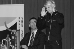 Al pesar de la ratificación de Derechos humanos al Parlamento de la Unión Europa, por allí, había los diputados de 27 países. Representó en mano una carta del Consejo de la ONU en Nueva York que su compromiso sería proceder los documentos para reconocer la lengua de Signos por la ley dependiendo de tratar en común de todos los escaños en el parlamento en 2004.