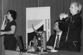 En la sala de conferencia de la EUD, Helga Stevens, Senadora y Miembro del Parlamento Flamenco de Bélgica, su filosofía es que la comunicación de la lengua de signos accedió a las puertas abiertas en cualquier tipo del ámbito en todas las ciudades de Bélgica, según el articulo de leyes de Derechos humanos, coordinaba sus proyectos de la realización del reconocimiento de Lengua de Signos entre los años de 1996 y 1997. Sin embargo, su punto de vista de que las personas sordas siguen viviendo la exclusión social tras el reconocimiento legal de la lengua de signos a nivel nacional.