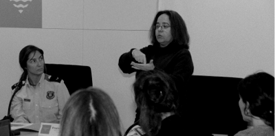 Rosell, la responsable del Área de Accesibilidad dijo que falta de implantar la adaptación de la estructura de los niveles de acceder a los entendimientos a través de la comunicación verbal en todos los ámbitos públicos de los servicios sociales, hay muchas posibilidades de aplicar los métodos psicológicos, y no deberían sentir obligadas como acompañantes de sus familiares, por ello se perderían ser autónomas como ciudadanas si tengan derechos de denunciar sus ocurrencias. Les rogó que todos los servicios se hagan importar los nuevos sistemas del proyecto Sitghos, lo más accesible entre las personas sordas y oyentes, sabemos que es difícil pero es el único camino para conseguir sus objetivos, en este caso de las mujeres sordas tienen un doble esfuerzo a superar a afrontar la situación por falta de la accesibilidad de la comunicación. (Raquel Barandiaran Franzi/ lescroniques.com)