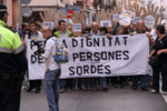 Mataró, frente de los manifestantes que ha sido la mayoría de las personas sordas, el grupo de ÁSKAL, familiares, interpretes, amigos cercanos a la comunidad sorda organizada por Centre de Persones Sordes de Maresme a Mataró (CPSMM) ya había hecho un llamamiento a todo lo que necesita apoyar en esta marcha popular por dignidad de las afectadas como las personas sordas que sentían discriminados y se enfrentan a la crisis económica a la vez del falta de tolerancia.[…][…] (Raquel Barandiaran Franzi /lescroniques.com)