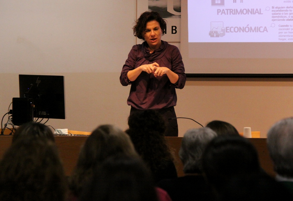Aquesta secció de la jornada de conscienciació sobre la violència masclista i la dona sorda, realitzada a la Biblioteca Central de Terrassa per part de Natalia Cárdenas, psicòloga social i educativa especialista en atenció centrada en la persona sorda, s’ha centrat en propiciar recursos (tot en llengua de signes, amb la plena disposició d’un intèrpret per al públic oient) per a, d’una banda, reconèixer un possible cas de violència –en qualsevol de les seves accepcions- contra la dona, i, per una altra, comprendre tan bé com sigui possible els passos necessaris per a donar un suport saludable i efectiu a víctimes en procés de recuperació. Fent especial èmfasi en visibilitzar les dones sordes que, per antonomàsia, presenten visibles problemes de comunicació fluida amb la major part de la societat, tal i com assenyala la presentadora: “Les dones amb diversitat funcional que són víctimes de violència masclista troben moltes barreres, arquitectòniques, de comunicació i de comprensió, per accedir a recursos d’atenció i informació…”. La xerrada ha proveït patrons de reconeixement que han anat més enllà de canvis en els patrons de la parla, per a endinsar-se en aspectes com a possibles divergències en els manierismes o les expressions facials habituals. (Daniel Cañizares / lescroniques.com)